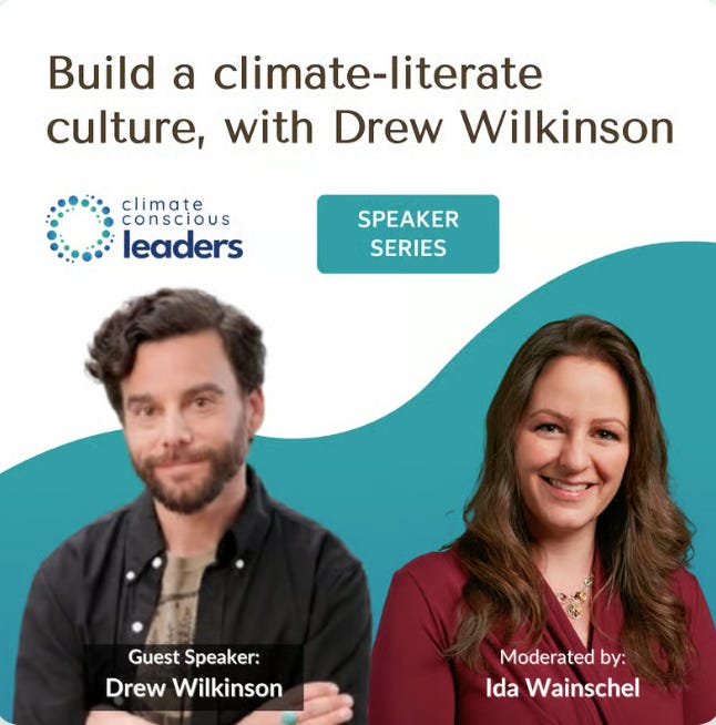 [VIRTUAL] Speaker Series - Climate Conscious Conversations: 3-4:20 pm. “In March, we’re hosting Drew Wilkinson: a co-founder of Microsoft’s 10,000 member employee sustainability community, and a consultant who brings climate consciousness to all parts of a professional organization. We’ll talk about Drew’s lessons in driving cultural change through employee engagement, and how anyone can make sustainability part of their jobs, regardless of title or past experience.”